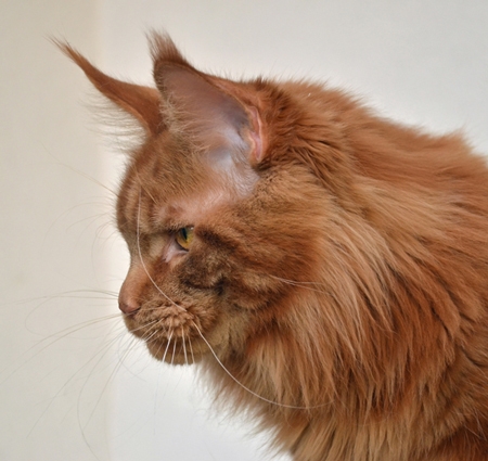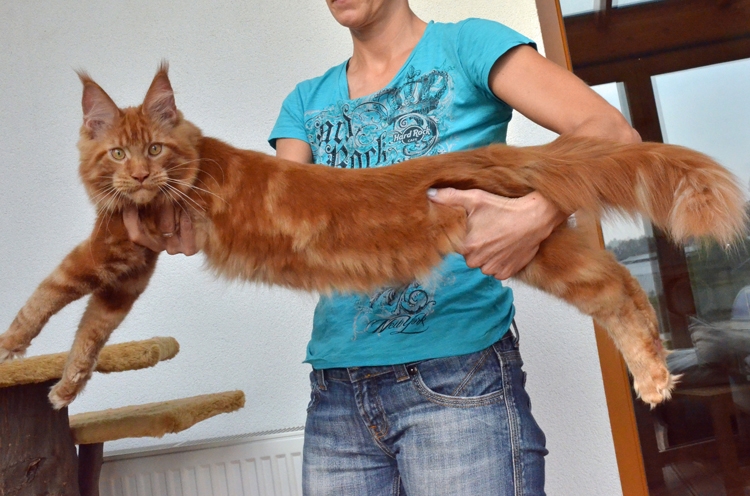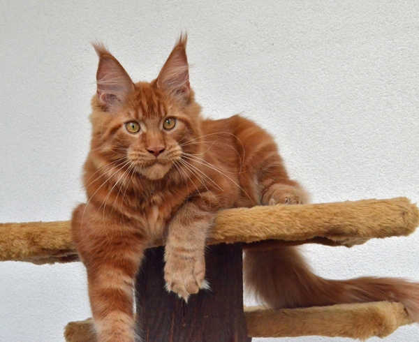 und einem ganz satten Rotton. Faberge hat auch einen sehr langen buschigen Schwanz.